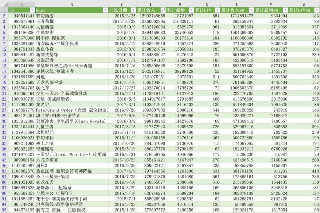 上述数据有助于研判一个游戏的吸量程度、最终收入、大致LTV,进而为评估市场流行趋势提供参考依据,便于研判新立项目的游戏类型与美术风格。