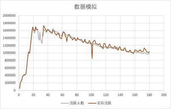 上图是拳皇前180天的模型拟合情况,可见拟合效果很好,它虽然有一定的指导意义,不过最终决定新增和留存的,还是宣发和游戏品质。